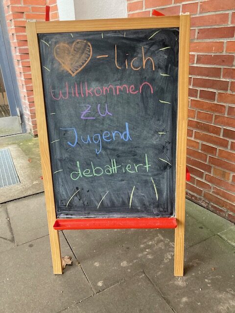 In den Vorrunden debattierten Lea (9b) und Hejdii (9d) mit ihren Mitstreiter:innen unter anderem über eine insektenfreundliche Gestaltung von Schulgärten und den Einsatz von KI-Anwendungen in schriftlichen Prüfungen. Beide schlugen sich in ihren zugelosten Pro- bzw. Contra-Rollen sehr gut. Lea verpasste zwar den Einzug ins Finale ganz knapp, aber mit Hejdii hatte das Corvey eine starke Vertreterin, als es um die Frage ging, ob auf allen öffentlichen Plätzen Hamburgs kostenloses WLAN angeboten werden soll. Hejdii belegte am Ende einen tollen dritten Platz und ist damit Nachrückerin für den Landeswettbewerb.