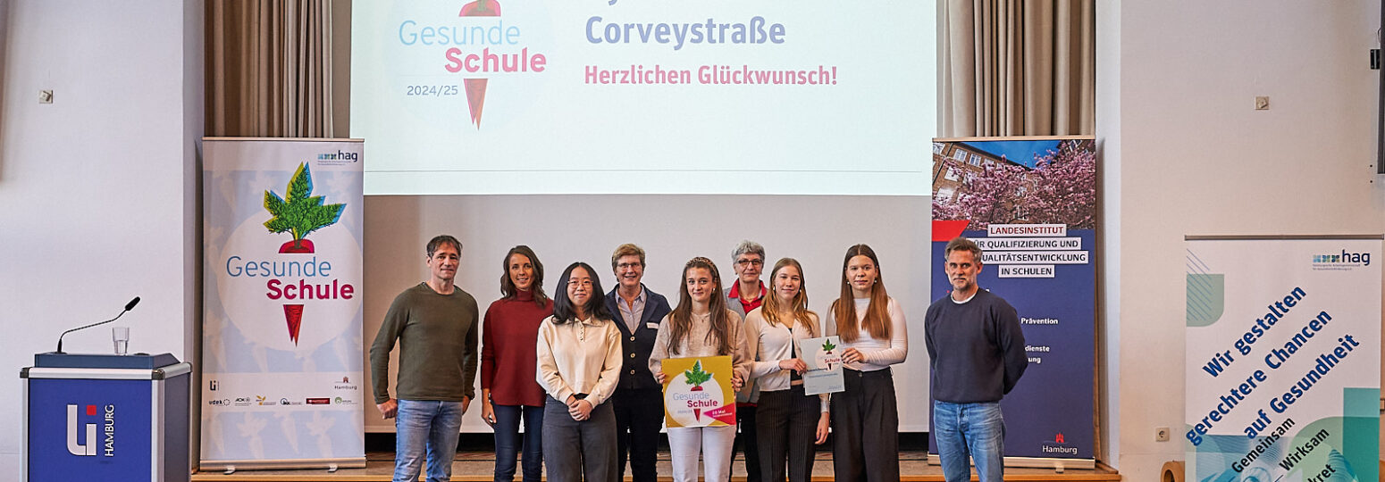 Das Gymnasium Corveystraße wurde in diesem Jahr zum 20. Mal mit der Auszeichnung „Gesunde Schule“ geehrt. Diese Anerkennung würdigt unser langjähriges Engagement, das Wohlbefinden unserer Schülerinnen und Schüler durch ein ganzheitliches Konzept der Gesundheitsförderung zu stärken.